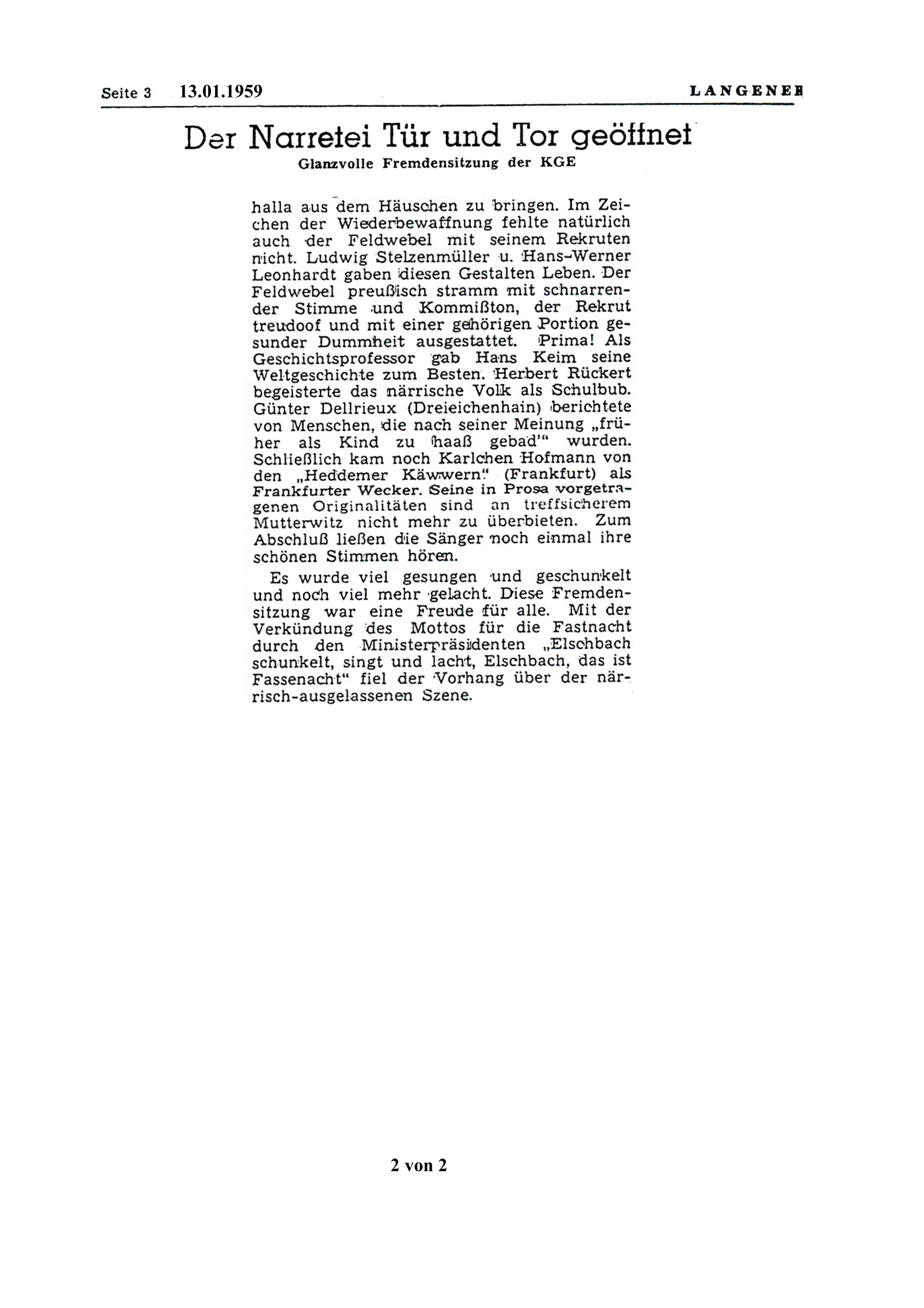 Büttenredner 1951. Links W. Braschinger, rechts Heinrich Kern